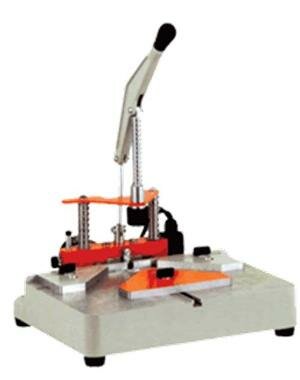 С помощью верхнего ручного прижима заусованные под 45o багетные заготовки фиксируются, после чего торцы фрезеруются концевой фрезой.