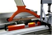 Усиленная конструкция салазок на каретке с базовой поперечной линейкой и телескопическим выдвижным упором позволяет надежно базировать крупногабаритные заготовки. Обеспечивает высокое качество и точную геометрию распила.