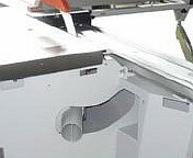 Аспирационный выход находится на пильном узле, что позволяет работать одинаково эффективно при любом наклоне пилы и практически исключает попадание пыли в каретку.