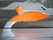 - Верхнее ограждение пильного диска имеет аспирационное отверстие для удаления отходов и крепится на расклинивающем ноже.