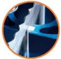 Пиление материала производится ленточной пилой. Верхняя направляющая пильного полотна имеет подшипники, которые увеличивают срок ее службы. Этому способствует также защитное устройство для пильного полотна со смещением по зубчатой рейке. Состояние натяжения пильного полотна показывает индикатор натяжения.