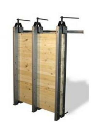 Комплект, состоящий из направляющей и трех стоек, позволяет склеивать щит длиной до 1700мм, шириной до 1200мм при толщине 15-100мм.